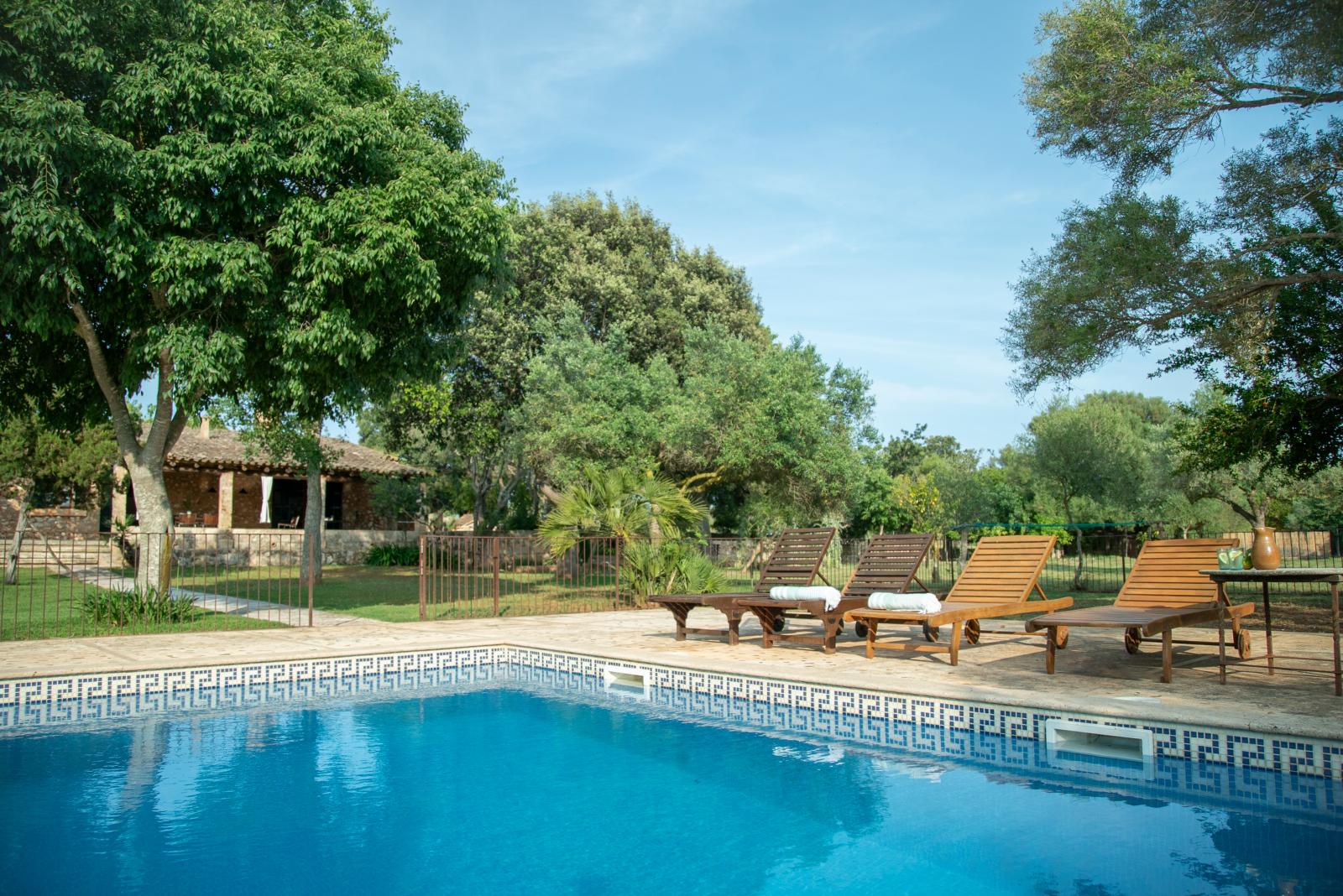 Disfruta de una auténtica experiencia en el campo mallorquín. Esta casa familiar, rodeada de naturaleza, ofrece tranquilidad y privacidad. Tiene una gran piscina, jardín con césped y árboles frutales, un porche amplio con mesa para comer al aire libre y disfrutar de su barbacoa. Cuenta con aparcamiento dentro de la propiedad y una habitación accesible para personas con movilidad reducida. Además, dispone de dos habitaciones extra con entrada independiente, ideales para familias o grupos.